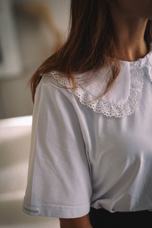 Sutaupykite"VINTAŽINIAI", BALTI MARŠKINĖLIAI SU APYKAKLE