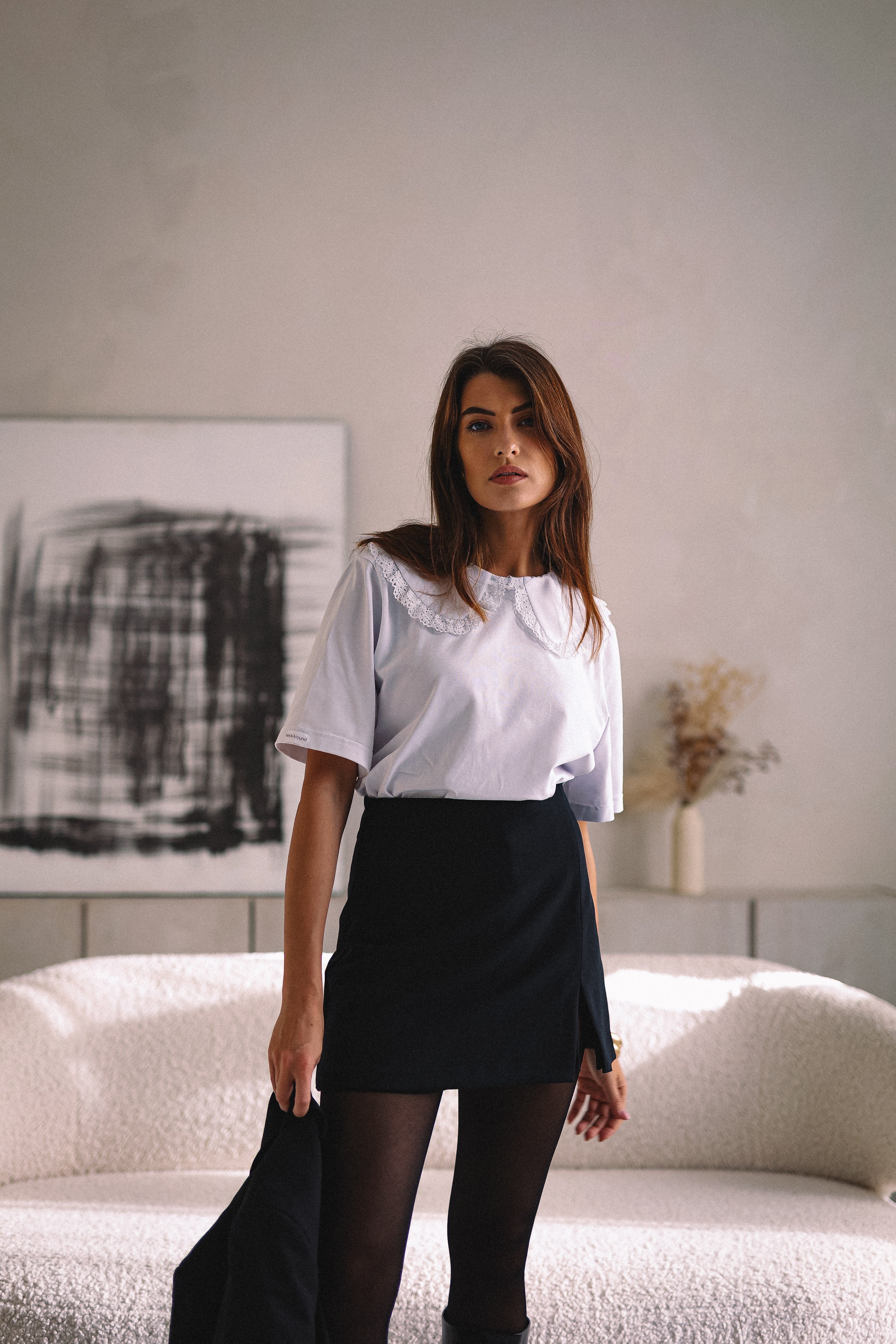 Puiki kokybė, labai gražiai padaryta apykaklė ir petukai. Jei mėgstate laisvesnius rūbus, rekomenduoju imti vienu dydžiu didesnius, nei įprastai nešiojate.