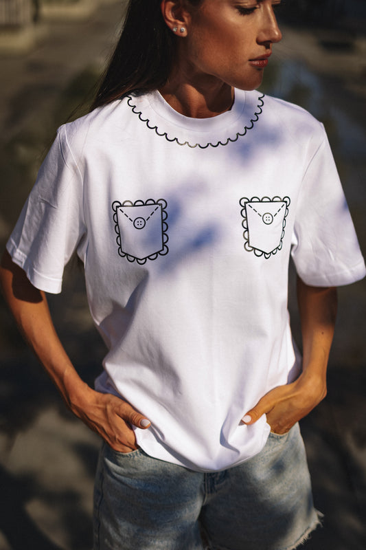 Sutaupykite"KIŠENĖS", BALTI MARŠKINĖLIAI