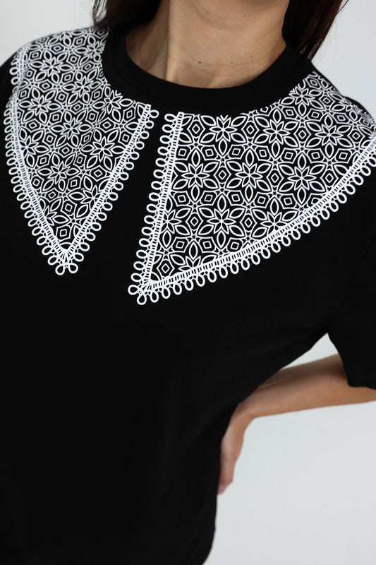Sutaupykite"ORNAMENTAI", JUODI MARŠKINĖLIAI