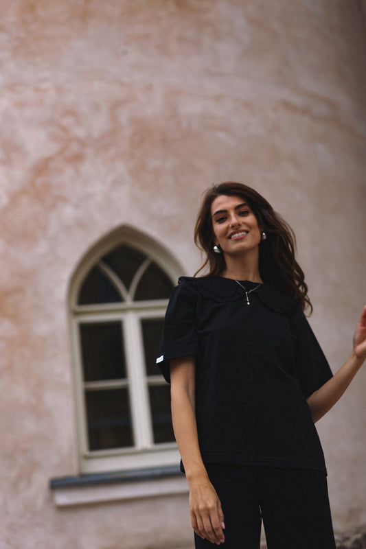 PASKUTINIAI VIENETAI - "VINTAŽINIAI" JUODI MARŠKINĖLIAI SU APYKAKLE