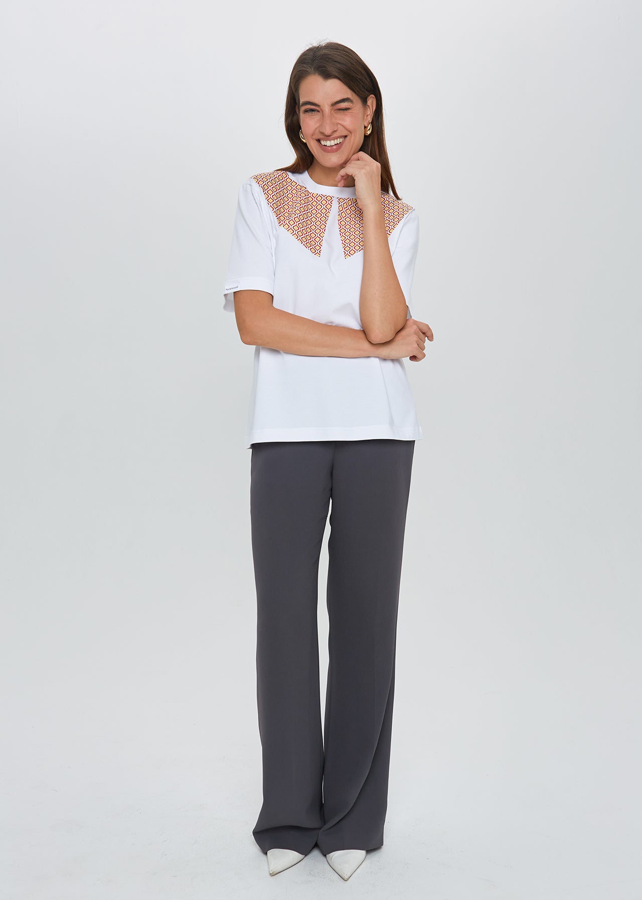 Prailgintos, 3/4 rankovės suteiks jaukumo, o originalus apykaklės lipdukas leis išsiskirti.
