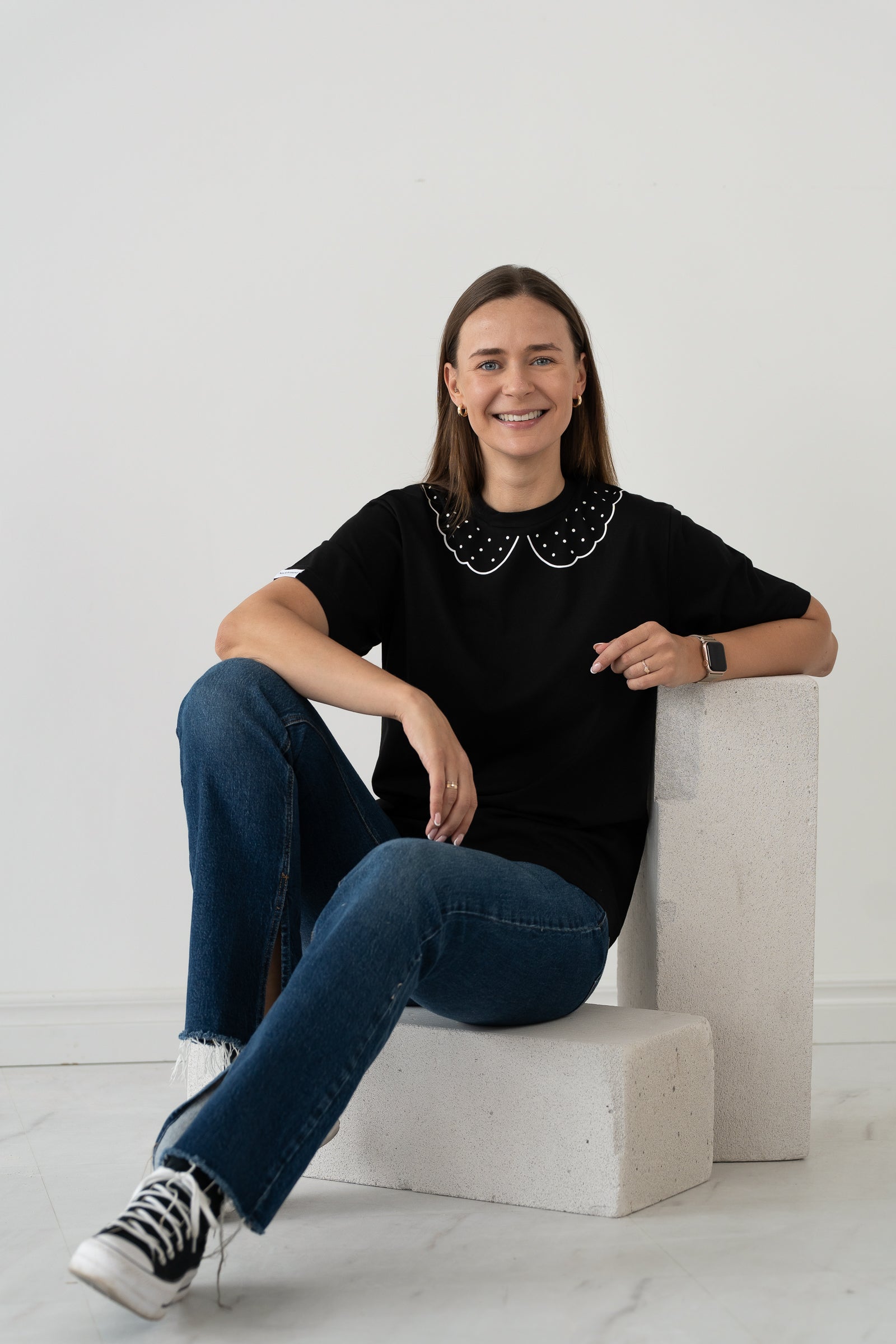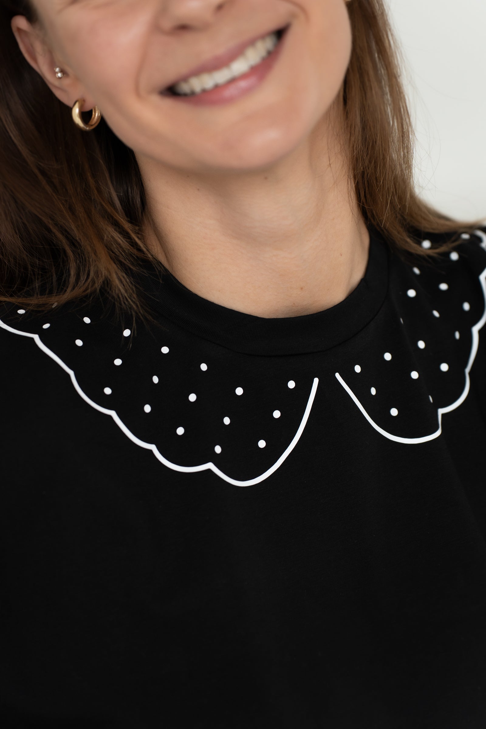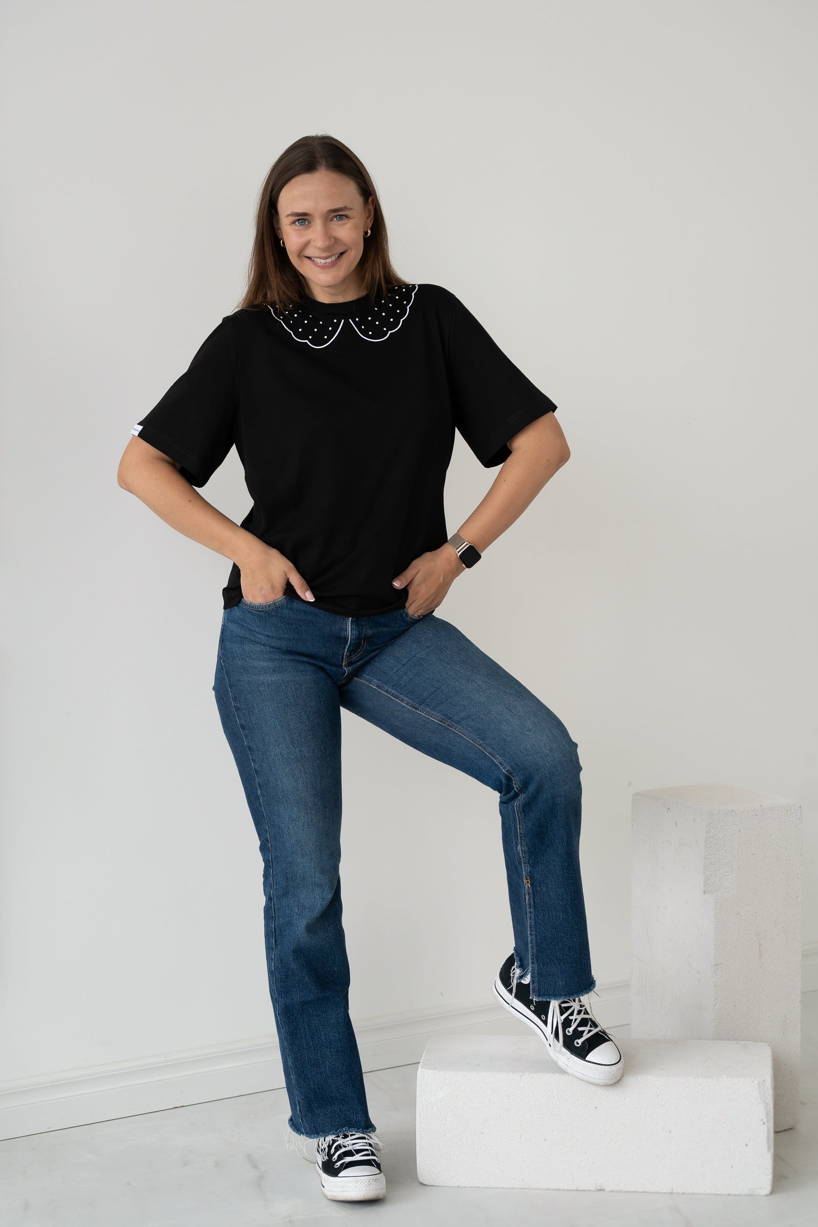 Prailgintos, 3/4 rankovės suteiks jaukumo, o originalus apykaklės lipdukas leis išsiskirti.