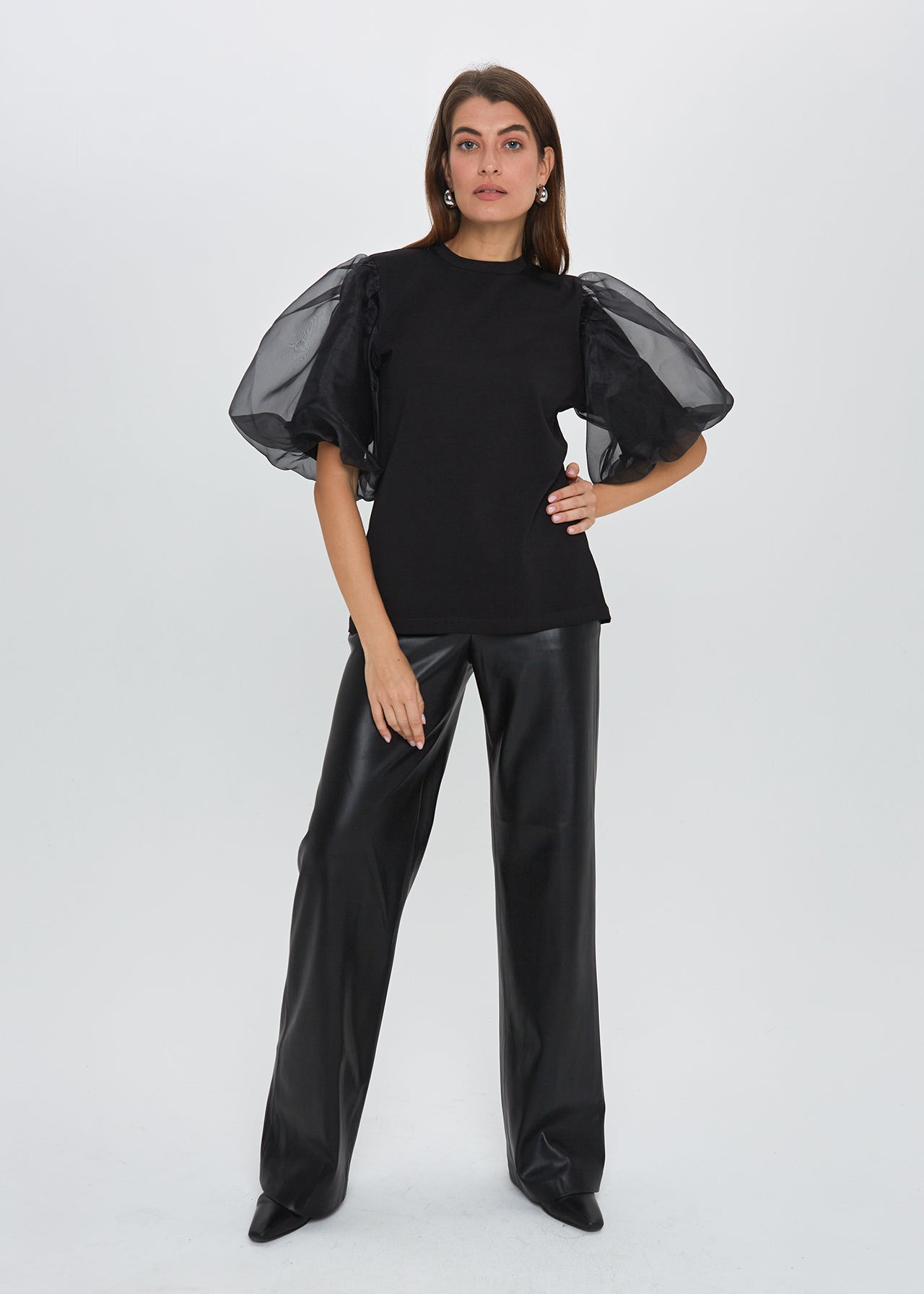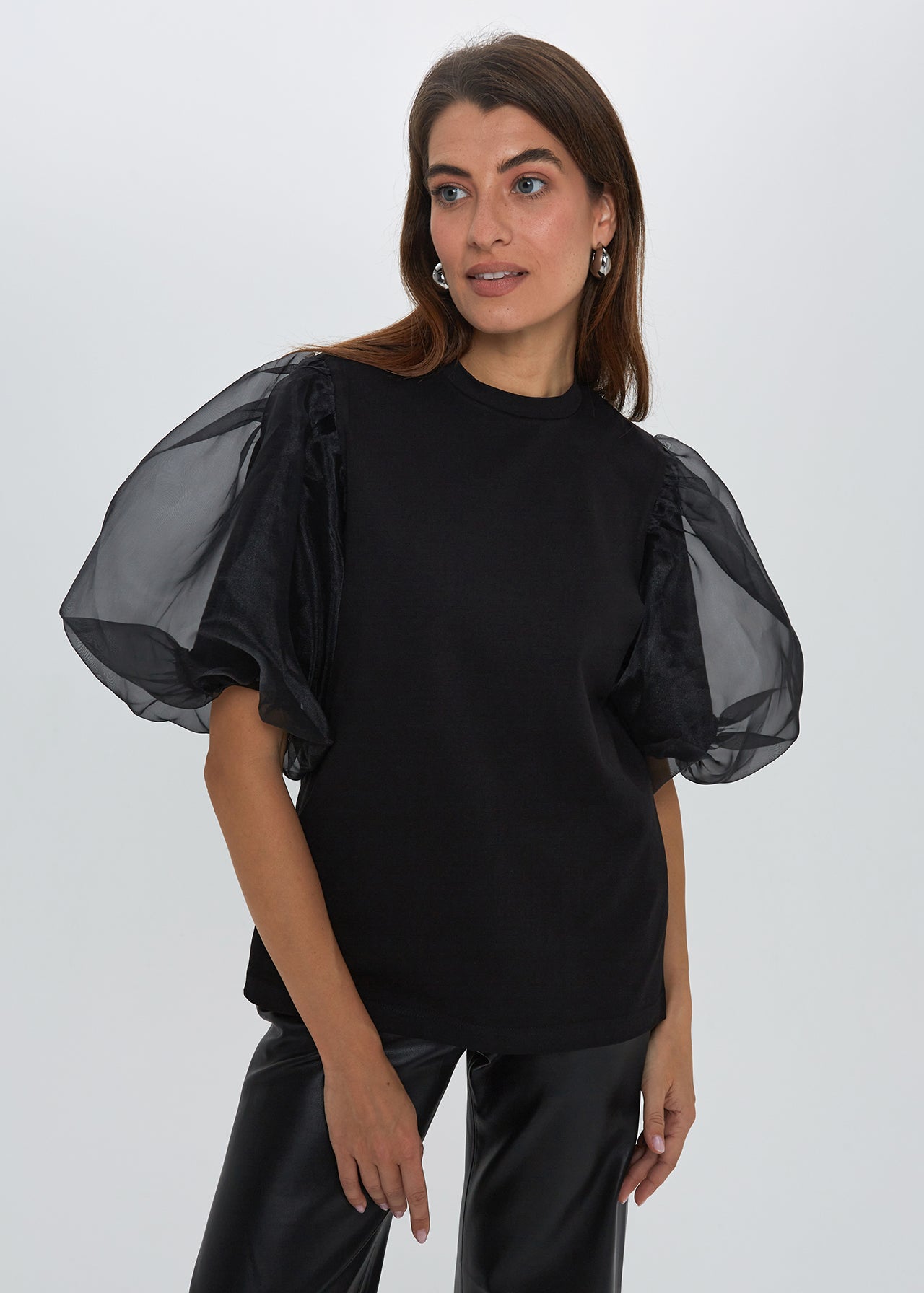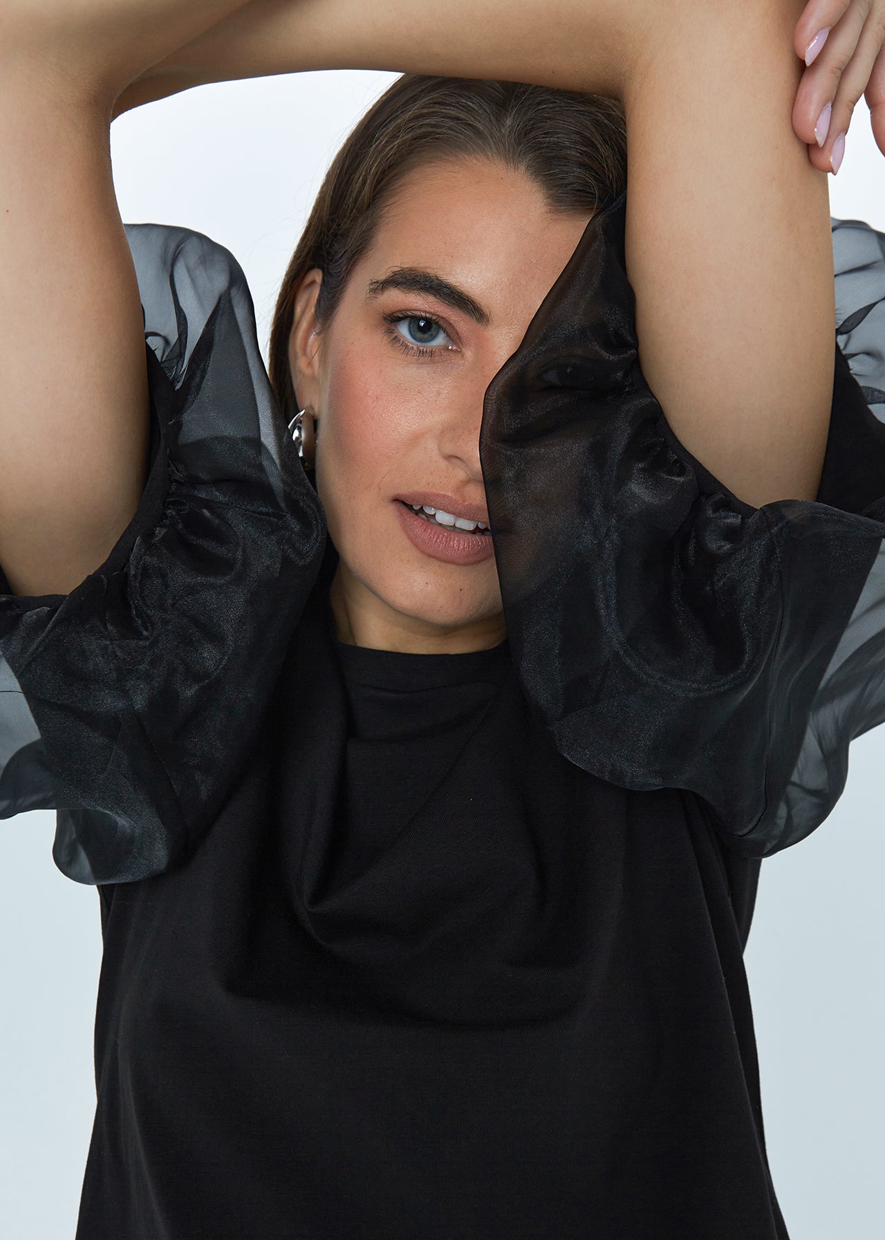 Oversized tipo marškinėliai (dydis S atitinka M) su kuriais jausitės ypač patogiai ir laisvai. O pūstos organzos rankovės suteiks puošnumo ir išskirtinumo jausmą. Šio modelio rankovės yra dvigubos - tai užtikrina maksimalų patogumą!