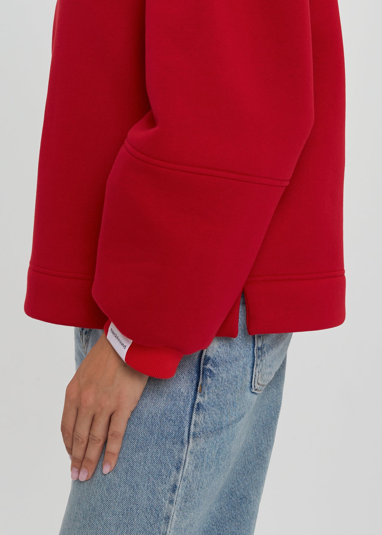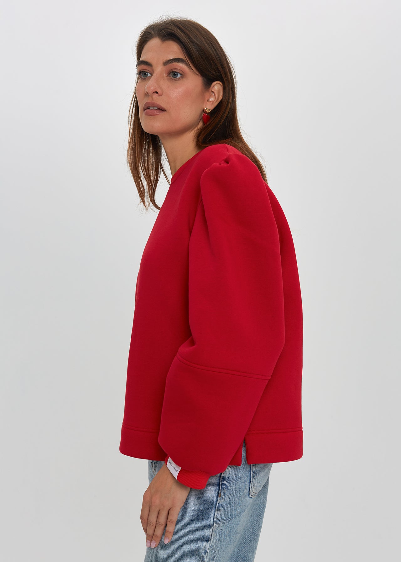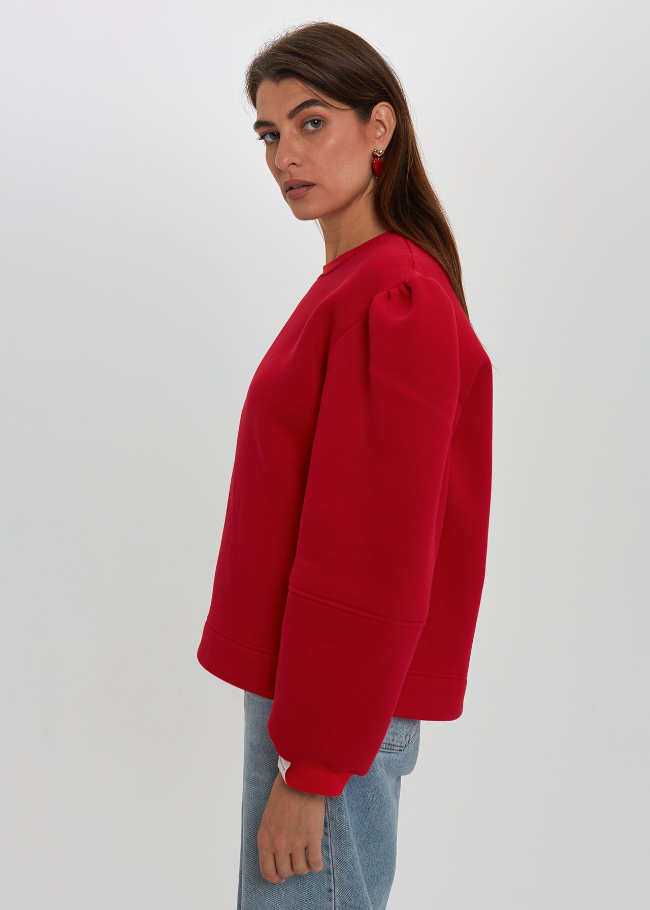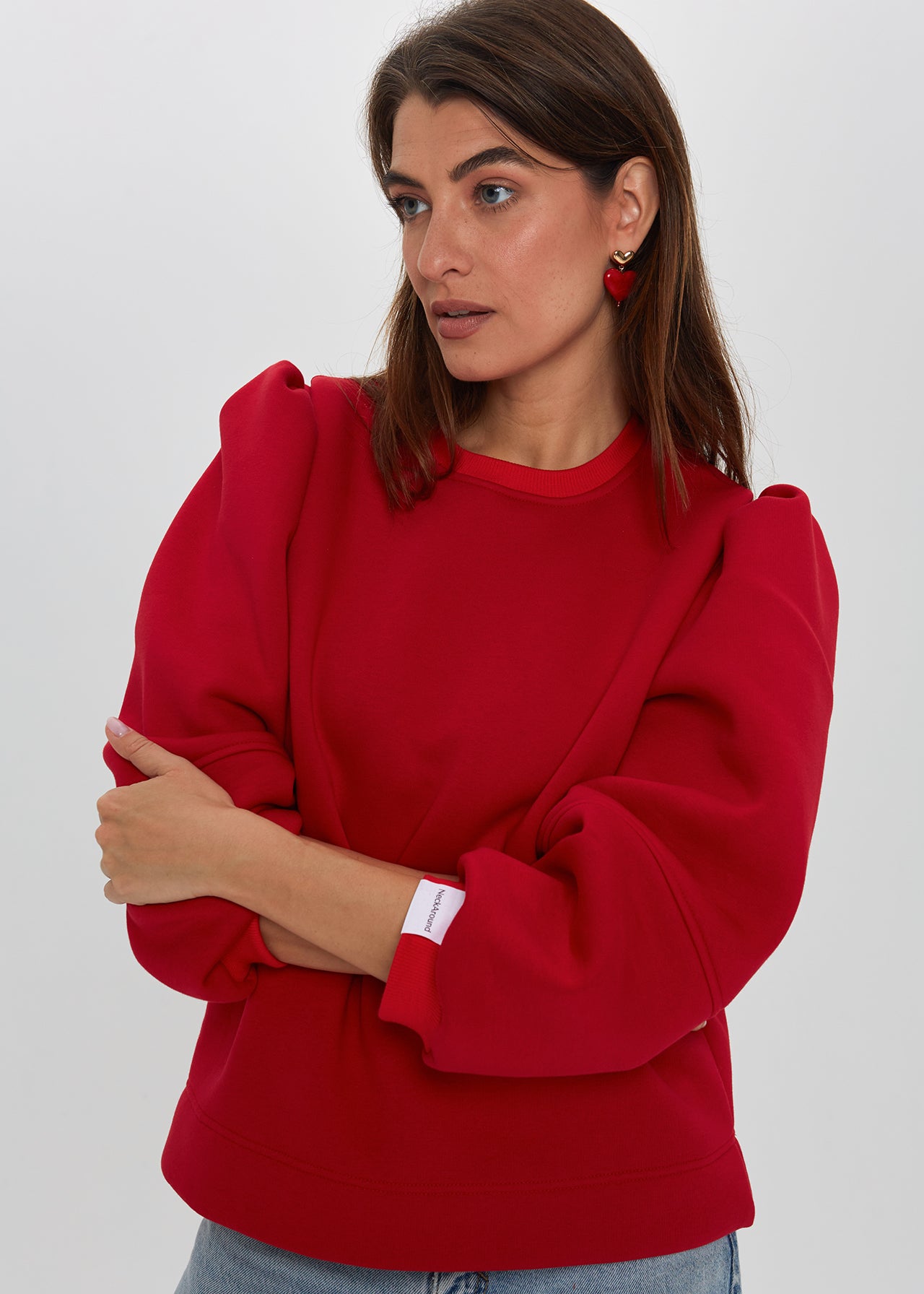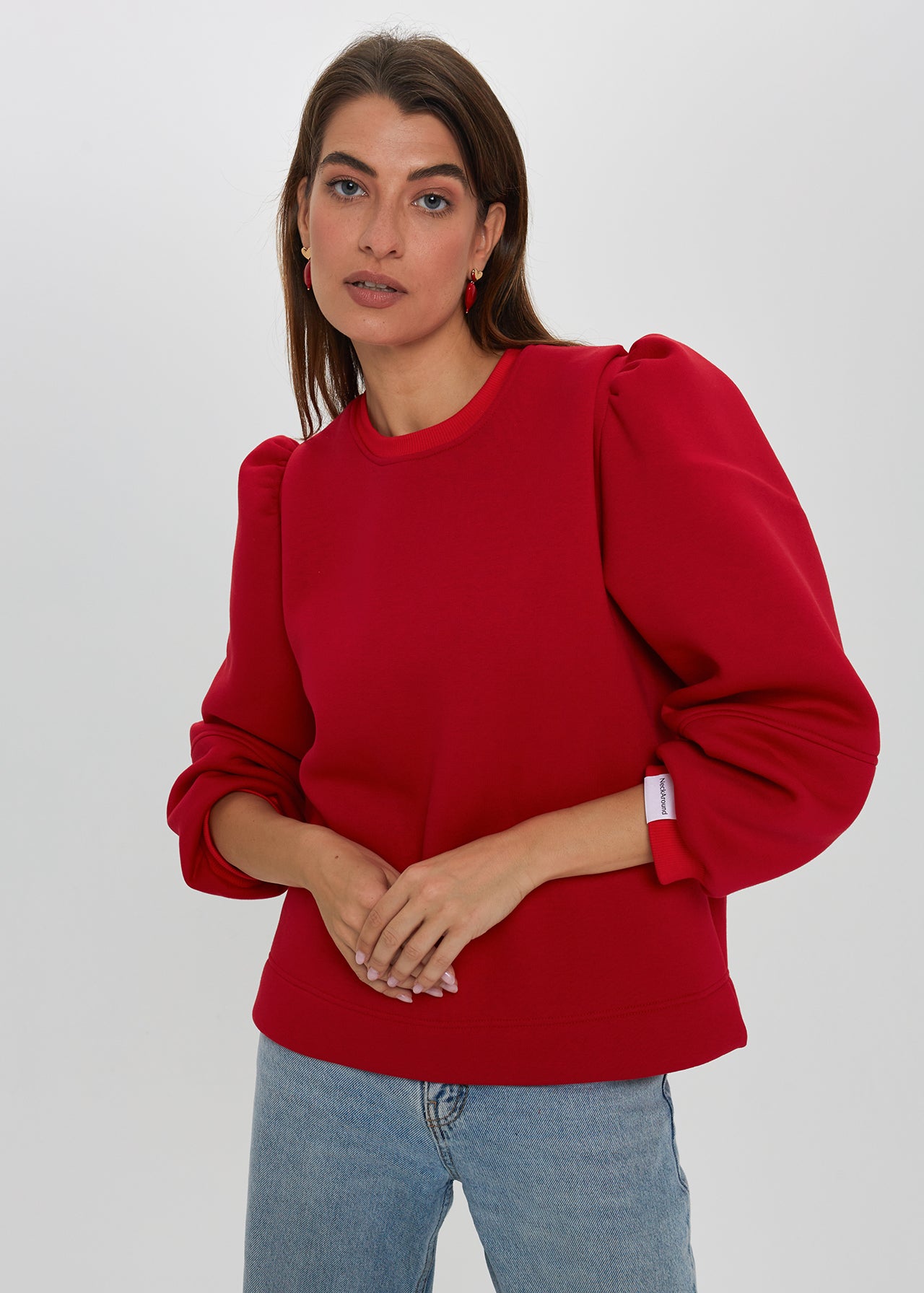 Šis ryškios raudonos spalvos megztinis su plačiomis rankovėmis yra tiesiog būtinas šių metų tavo pasirinkimas. Megztinio plačios ir pūstos rankovės yra šių metų mados tendencijų top'as!